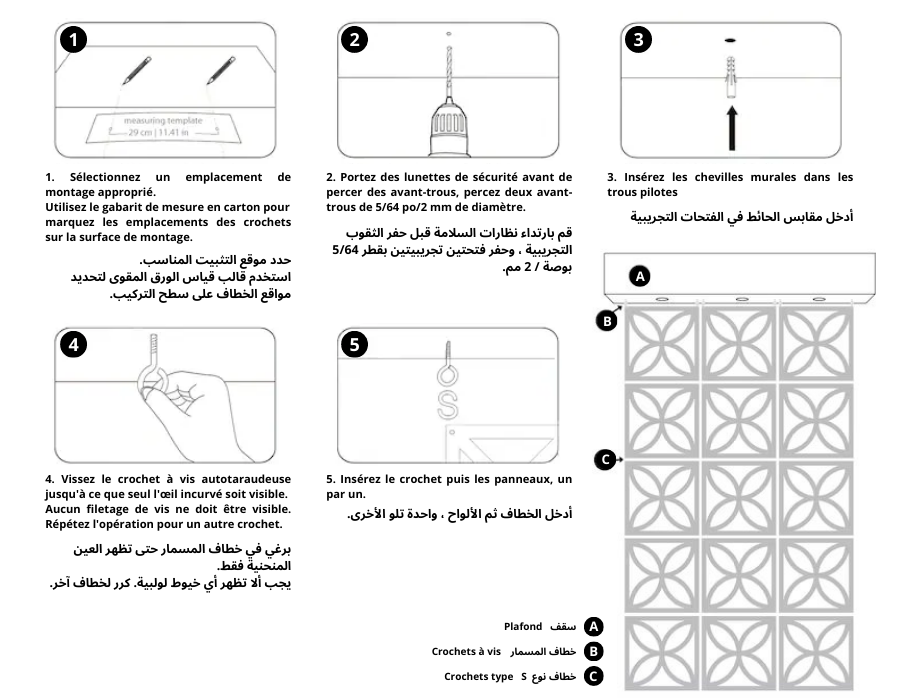 Chaque kit contient 15 panneaux, 6 anneaux de suspension et 40 anneaux de connexion pour une configuration personnalisée.