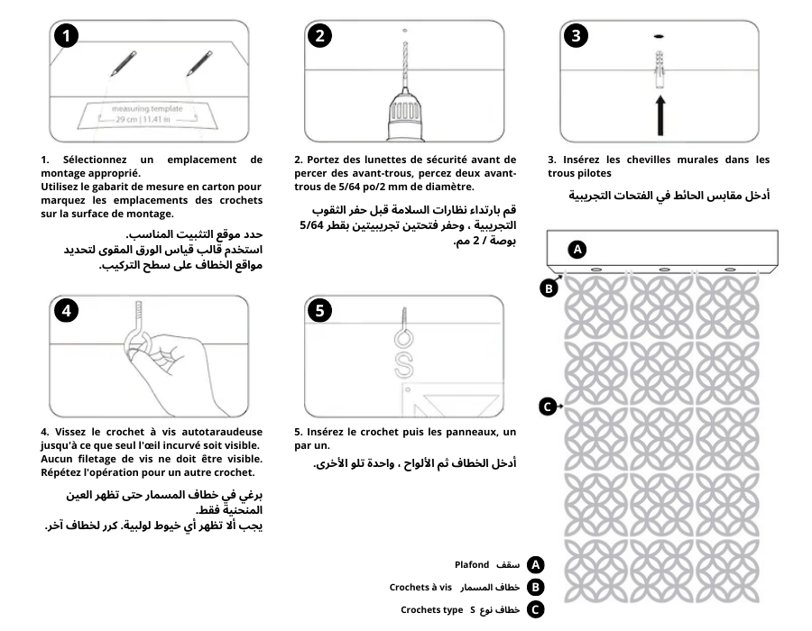 Livré en Kit : 30cm x 30cm (par panneau)Chaque kit contient 15 panneaux, 6 anneaux de suspension et 40 anneaux de connexion pour une configuration personnalisée. Plusieurs kits peuvent être combinés pour s'adapter à votre mur.