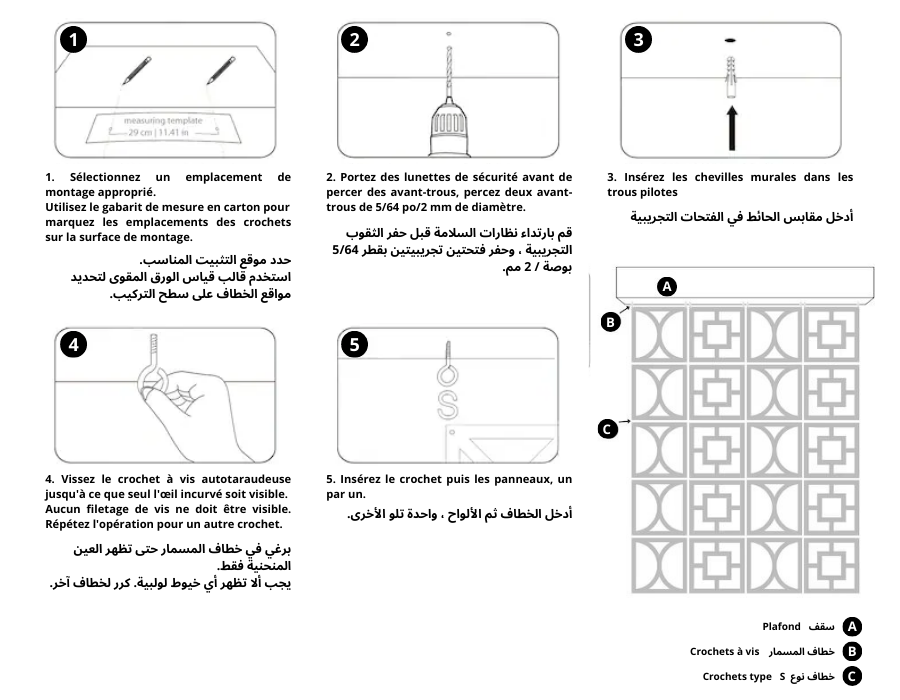 Livré en Kit : 30cm x 30cm (par panneau)Chaque kit contient 15 panneaux, 6 anneaux de suspension et 40 anneaux de connexion pour une configuration personnalisée. Plusieurs kits peuvent être combinés pour s'adapter à votre mur.