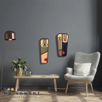 Set de masques en bois décoratif fait main inspiré de Picasso, du cubisme, des formes et des contours.