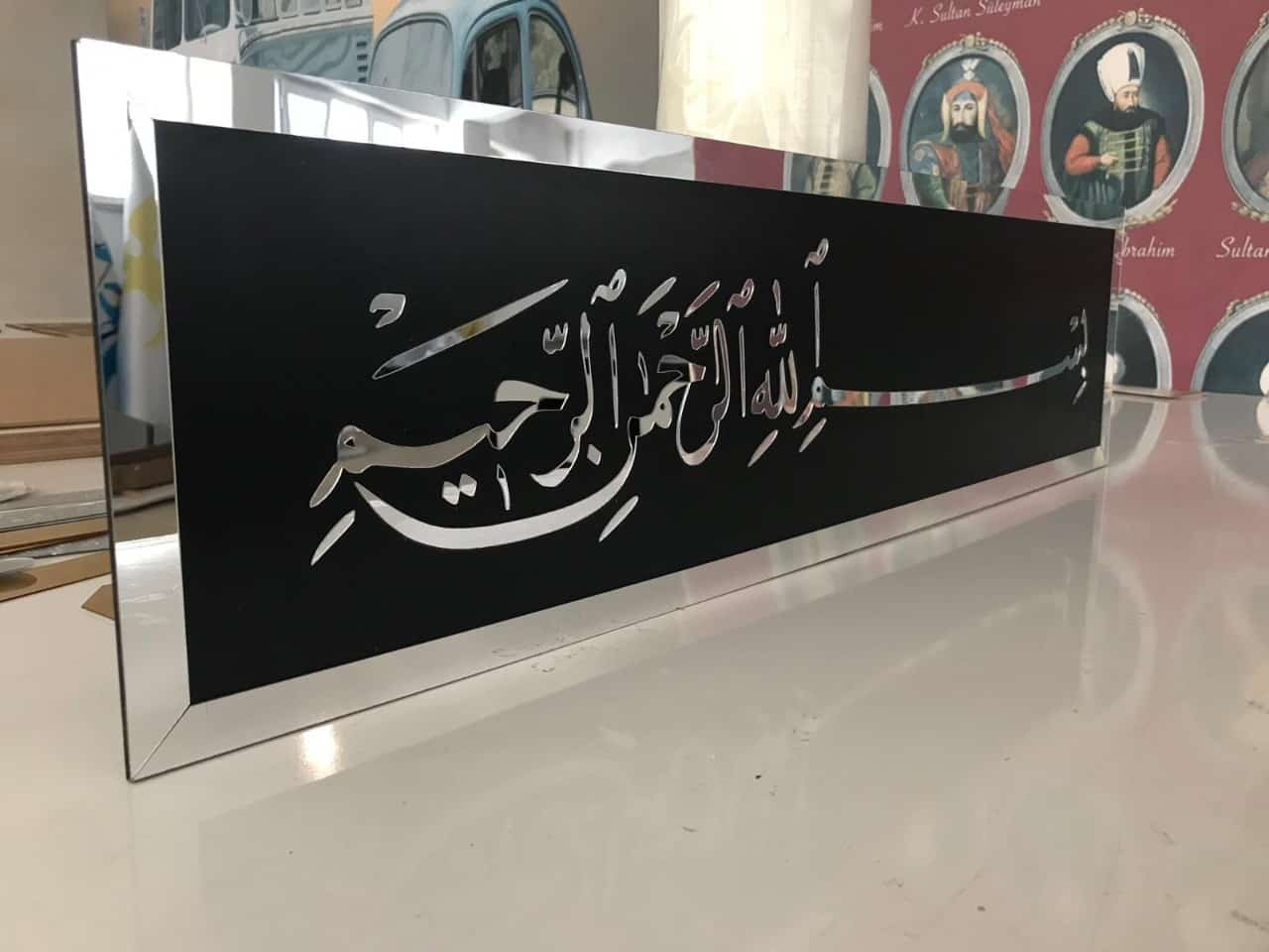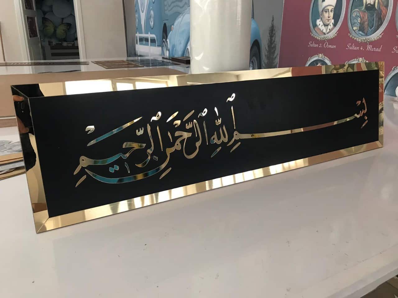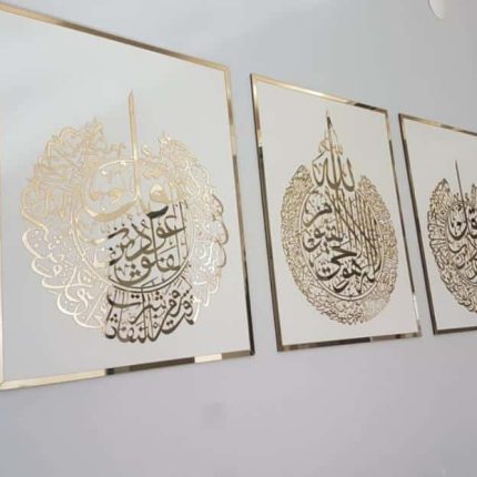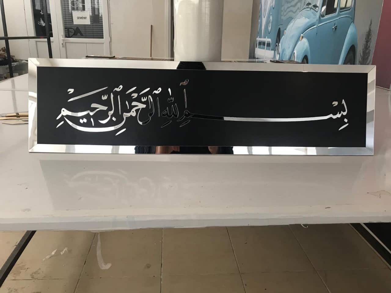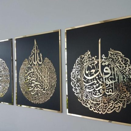 Tableau avec versets du Coran en forme reliefs 3D base en bois MDF et personnalisation en PMMA effet miroir (1m20 x 0m60) composé de 3 parties de 40cm x 60cm.????Préparé par nos soins et livré en trois (3) pièces, sous 4 jours ouvrable après la confirmation de votre commande. ????Facile à installer, à entretenir et a nettoyer. Pas besoin d’un professionnel.